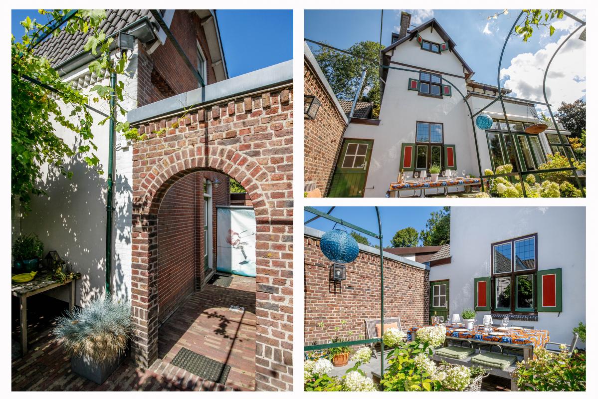 Naast de villa vindt u het koetshuis. Aan de zijkant bevindt zich de ingang van het appartement (56 m2).