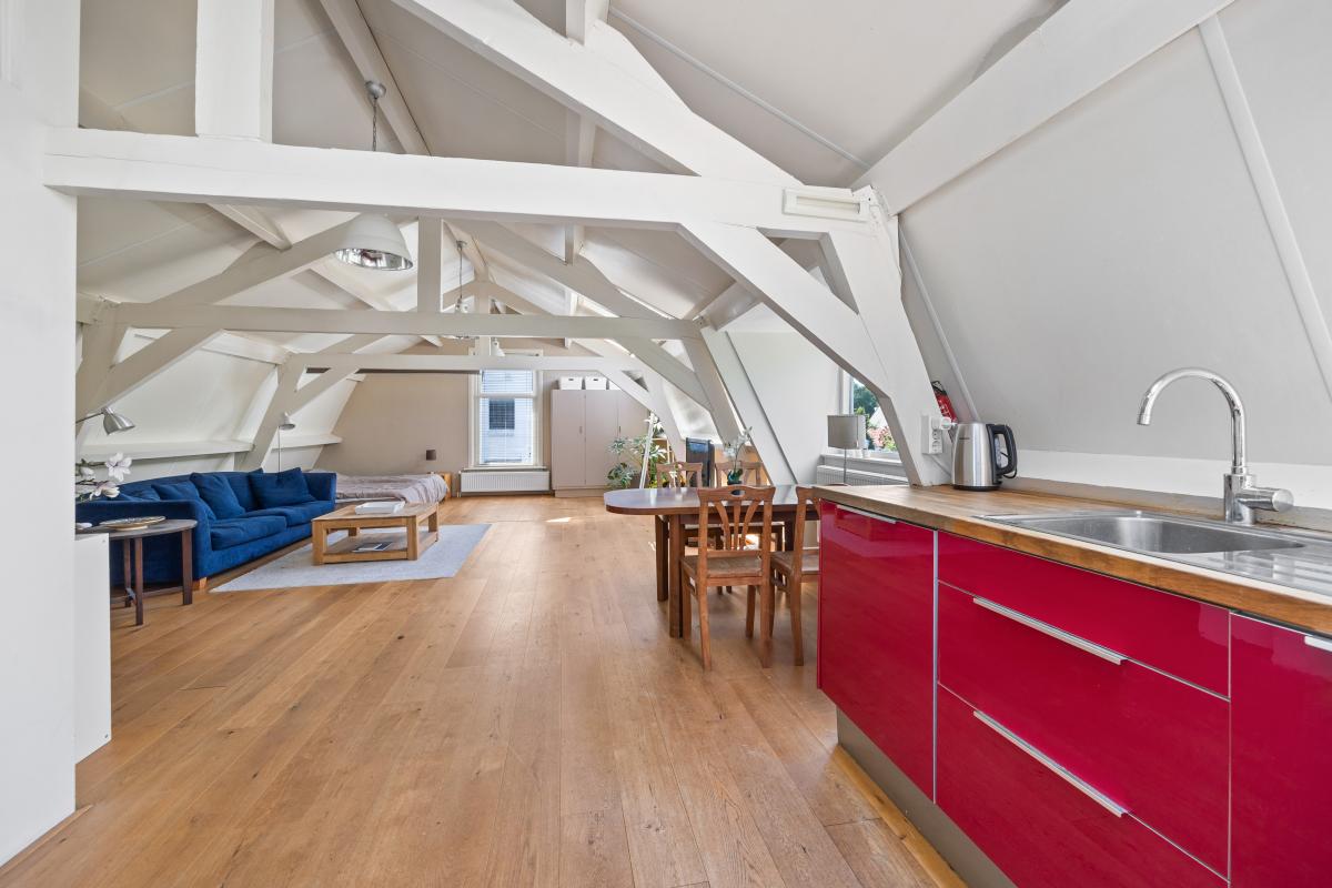 In het portaal neemt u de trap naar de 1e verdieping. U komt binnen in de open keuken met L-vormig keukenblok met kookplaat, gootsteen en koelkast. In de aangrenzende ruimte vindt u een eetgedeelte, zitgedeelte en slaapgedeelte.