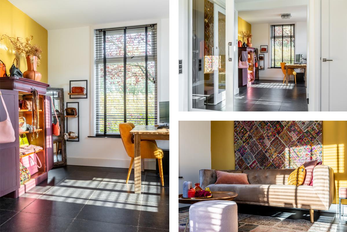 De voorkamer (circa 28 m2) heeft een eigen entree en is thans in gebruik als werkkamer. Er zijn veel vaste kasten (met onder meer de meterkast). Het is een plek met een rustgevende uitstraling.