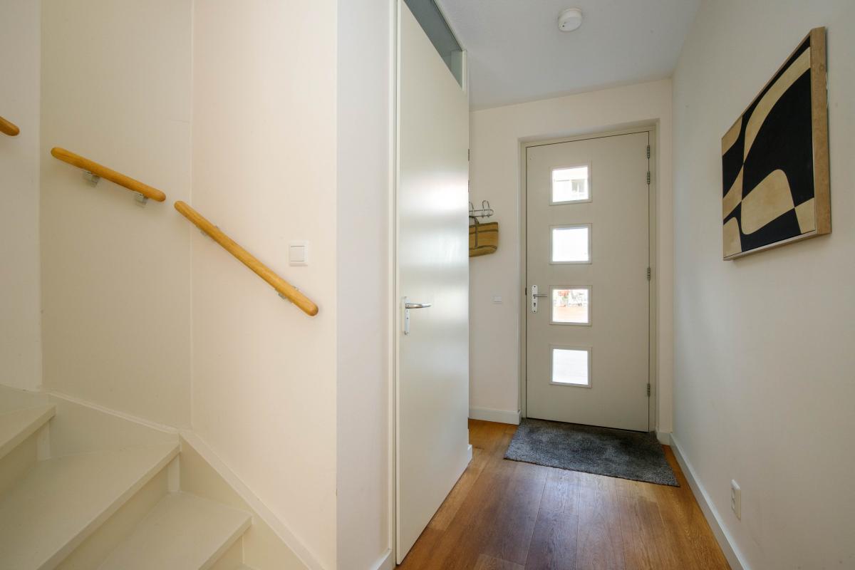 Vanaf de overdekte entree van het complex bereikt u de woning via de gemeenschappelijke hal en binnentuin.
