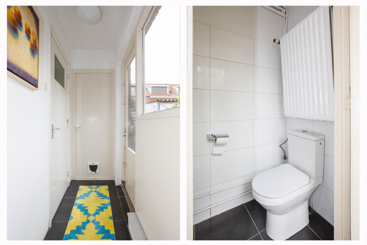 Vanuit de keuken bereik je een kleine gang naar het toilet met fonteintje en de bijkeuken.